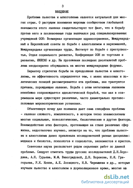 Объективную почву для полемики дает сама специфика проблемы - явления сложного, комплексного, в котором тесно взаимосвязаны многие социальные, психологические, биологические и другие факторы. Взаимодействие этих факторов, протекающее на стыке различных сфер жизни, недостаточно изучено, несмотря на то, что проблема пьянства и алкоголизма давно привлекала исследователей разных дисциплин: медиков и биологов, психологов и социологов, экономистов и юристов.