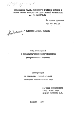Некоторые другие стороны данной проблемы (формы фонда возмещения, влияние его на общеэкономические пропорции) изучались Л. Александровым, М.З. Бором, B.C. Вечкановым, В.М. Куд-ровым, В.А. Медведевым, ЇЇ.М, Павловым, А.К. Покрытаном, Г.М. Сорокиным, Т.С, Хачатуровым и др. Определенный вклад в изучение проблем фонда возмещения внесли литовские экономисты и, в частности, В. Скоминас, В. Гавялис, П. Кюберис и др.