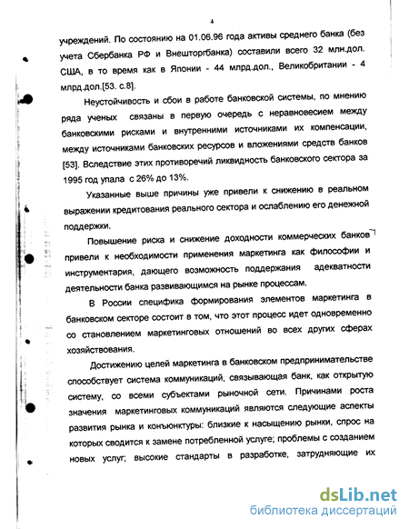 Повышение риска и снижение доходности коммерческих банков"1 привели к необходимости применения маркетинга как философии и инструментария, дающего возможность поддержания адекватности деятельности банка развивающимся на рынке процессам.