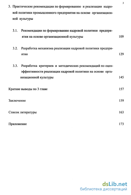 3.3. Разработка критериев и методических рекомендаций по оцен-эффективности реализации кадровой политики на основе организационной культуры 145