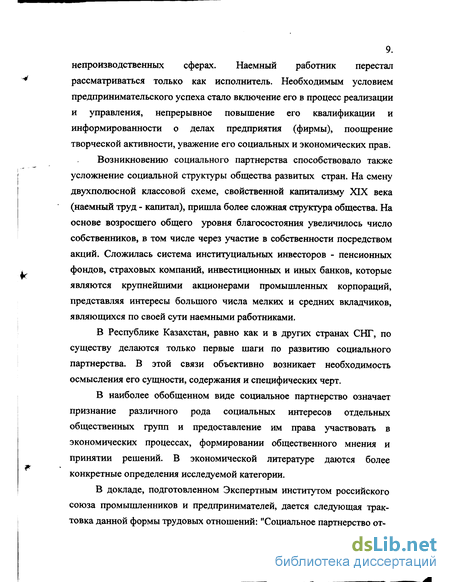 В Республике Казахстан, равно как и в других странах СНГ, по существу делаются только первые шаги по развитию социального партнерства. В этой связи объективно возникает необходимость осмысления его сущности, содержания и специфических черт. В наиболее обобщенном виде социальное партнерство означает признание различного рода социальных интересов отдельных общественных групп и предоставление им права участвовать в экономических процессах, формировании общественного мнения и принятии решений. В экономической литературе даются более конкретные определения исследуемой категории.