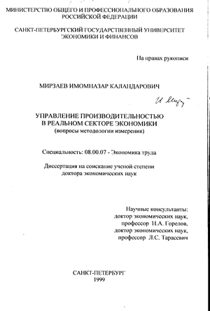 Предметом исследования в данной работе являются теория и методология измерения производительности факторов производства и система управления производительностью. Объектом исследования выбраны реальный сектор экономики Узбекистана, в частности промышленные отрасли и предприятия.