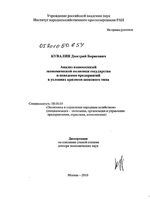 Целью исследования является изучение взаимосвязей между экономической политикой государства и поведением предприятий в условиях кризисов шокового типа.