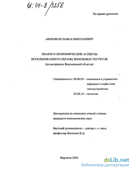 Методологической и методической основой диссертационного исследования являются научные концепции, принципы по использованию земель, разработанные известными отечественными учеными, законодательные и нормативные акты субъектов Российской Федерации, специальная литература по вопросам экономики, экологии» землеустройства, почвоведения, землепользования И Т.Д.