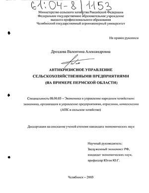 Теоретической и методологической основой исследования явились труды ведущих российских и зарубежных ученых по проблеме антикризисного управления. Использованы законодательные акты РФ, методические и инструктивные материалы министерств и ведомств, данные Госкомстата РФ, годовые и квартальные отчеты сельскохозяйственных предприятий Пермской области.