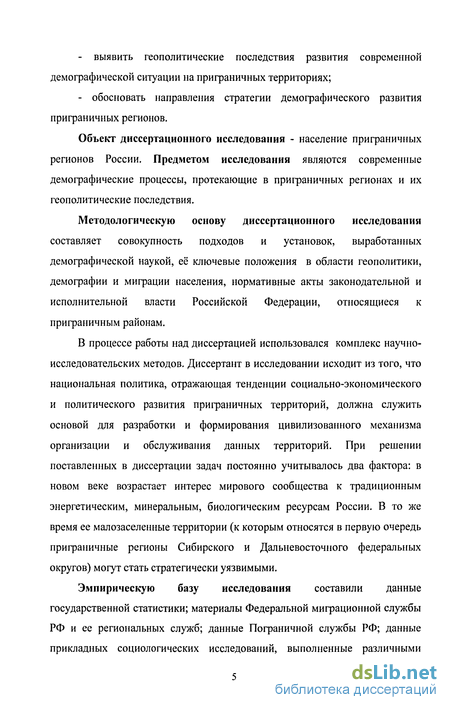 Методологическую основу диссертационного исследования составляет совокупность подходов и установок, выработанных демографической наукой, её ключевые положения в области геополитики, демографии и миграции населения, нормативные акты законодательной и исполнительной власти Российской Федерации, относящиеся к приграничным районам.