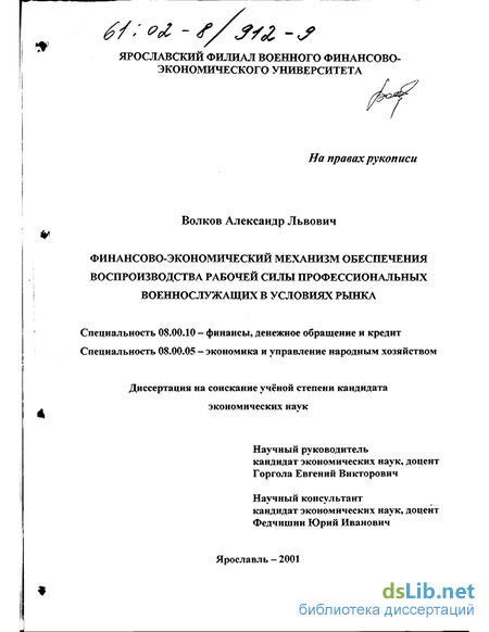 Глава 2. Система финансово-экономического обеспечения воспроизводства рабочей силы профессиональных военнослужащих 61-108