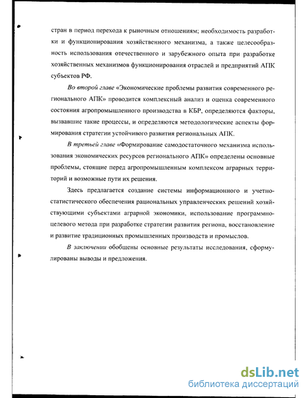 Во второй главе «Экономические проблемы развития современного регионального АПК» проводится комплексный анализ и оценка современного состояния агропромышленного производства в КБР, определяются факторы, вызвавшие такие процессы, и определяются методологические аспекты формирования стратегии устойчивого развития региональных АПК.
