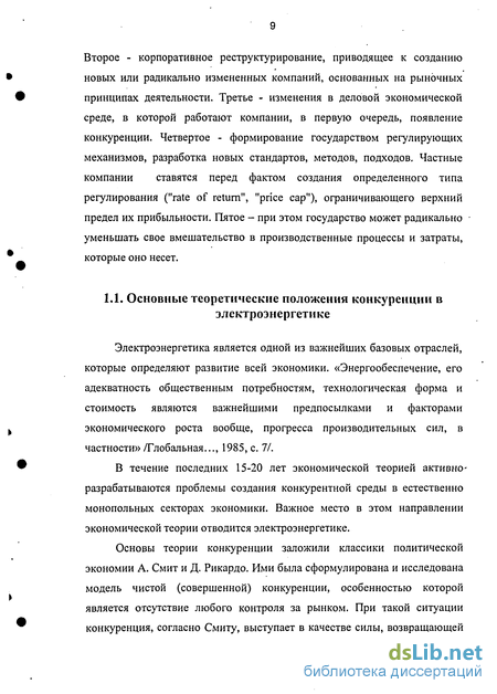 Основные теоретические положения конкуренции в электроэнергетике 9