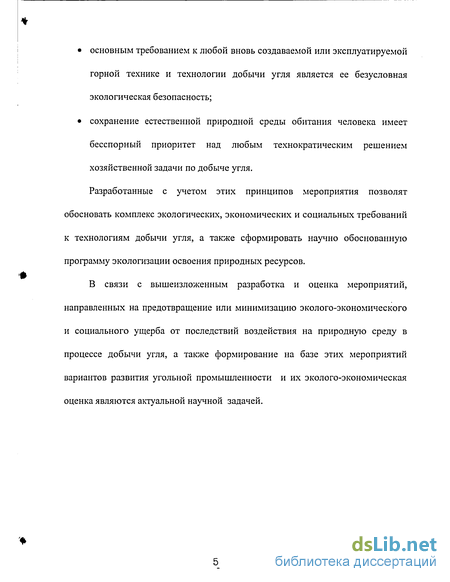 В связи с вышеизложенным разработка и оценка мероприятий, направленных на предотвращение или минимизацию эколого-экономического и социального ущерба от последствий воздействия на природную среду в процессе добычи угля, а также формирование на базе этих мероприятий вариантов развития угольной промышленности и их эколого-экономическая оценка являются актуальной научной задачей.
