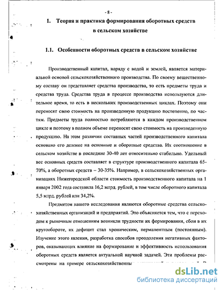 1. Теория и практика формирования оборотных средств в сельском хозяйстве.8