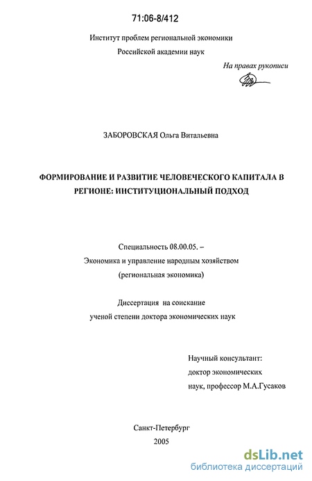 Несмотря на то, что на уровне национальной экономики институциональные проблемы функционирования получили широкое освещение в литературе, количество соответствующих исследований в области человеческого капитала весьма скудно. В еще большей степени этот вывод относится к изучению институциональных особенностей формирования и развития человеческого капитала на уровне региона, в экономике которого потенциальная рабочая сила, собственно, и превращается в форму человеческого капитала.