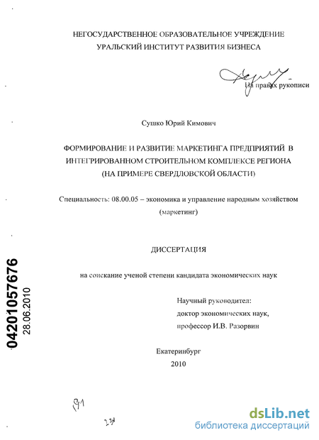 Поэтому исследования, связанные с разработкой теоретических и методических основ формирования и развития маркетинга предприятий интегрированного строительного комплекса представляются весьма актуальными и своевременными, что и предопределило выбор темы диссертационной работы.