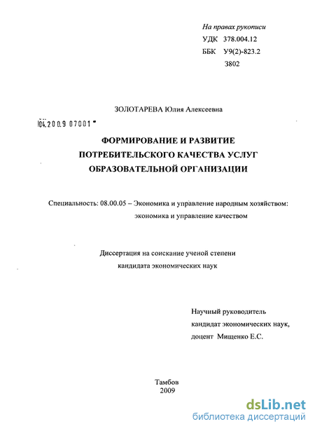 Из сказанного выше вытекает необходимость создания целостной, научно-обоснованной теории формирования и развития потребительского качества ОУ, что предопределило выбор темы, цель, задачи и основные направления исследования.
