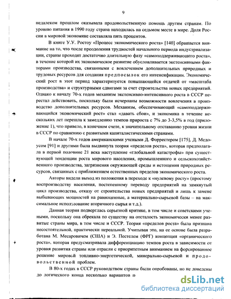 В начале 70-х годов американскими учеными Д. Форрестером [175], Д. Медо-усом [91] и другими была выдвинута теория «пределов роста», которая предполагала в первой половине 21 века наступление «глобальной катастрофы» при существующей тенденции роста мирового населения, промышленного и сельскохозяйственного производства, загрязнения окружающей среды и истощения природных ресурсов, связанных с приближением естественных пределов экономического роста.