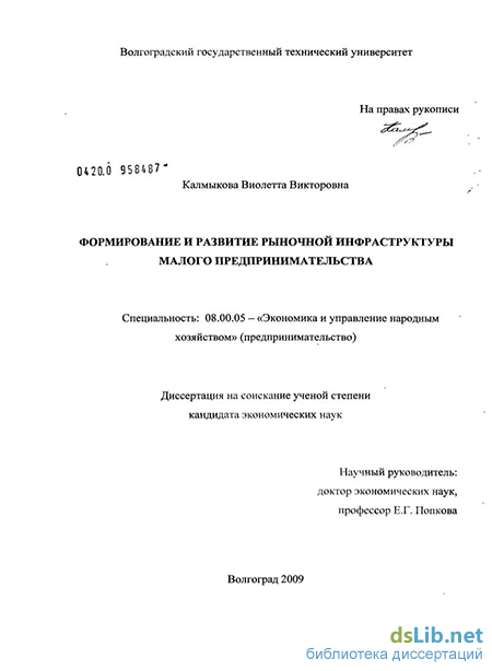 2.1 Особенности исследований рыночной инфраструктуры малого предпринимательства 63