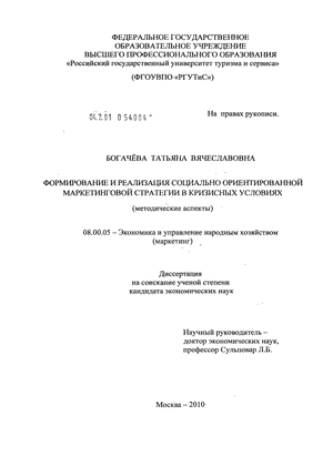 Цель и задачи исследования. Цель диссертационного исследования состоит в разработке методических рекомендаций по формированию социально ориентированной маркетинговой стратегии предприятия в кризисных условиях.