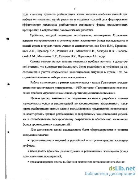 Переход России к рыночным отношениям сопровождается значительным снижением темпов воспроизводства и увеличением темпов выбытия жилищного фонда. В условиях переходной экономики успех жилищной политики и жилищной реформы может быть обеспечен на основе разработки и реализации мероприятий, основанных на исследовании и анализе процессов воспроизводства и выбытия жилищного фонда. Для этого необходимо разработать новые научно обоснованные подходы, учитывающие сложившиеся современные условия в жилищной сфере.