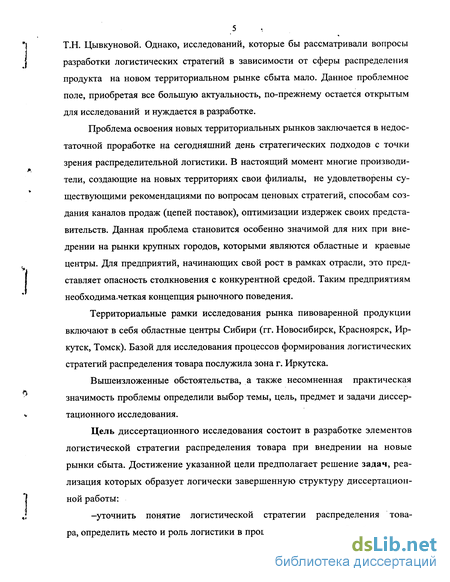 Цель диссертационного исследования состоит в разработке элементов логистической стратегии распределения товара при внедрении на новые рынки сбыта. Достижение указанной цели предполагает решение задач, реализация которых образует логически завершенную структуру диссертационной работы: