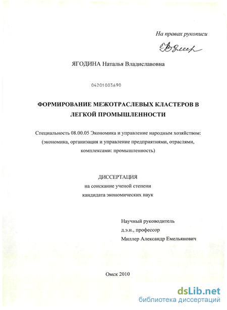 Актуальность проблемы формирования межотраслевых кластеров в легкой промышленности, недостаточная степень ее разработанности обусловили выбор темы диссертации, определили цель и задачи, а также основные направления исследования.