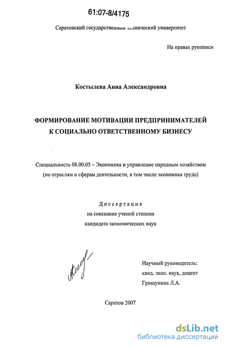 Степень разработанности проблемы. На современном этапе социально-экономического развития практически всеми экономистами признается важность управления предпринимательской деятельностью, однако исследование научных подходов к данной проблеме позволяет сделать вывод о том, что комплексный анализ и перспективы развития именно основных мотивов и стимулов предпринимателей к социальной ответственности бизнеса отсутствуют и в отечественной и в зарубежной теории - основное внимание уделяется изучению и систематизации самих проблем развития социальной ответственности и трудовой мотивации в целом.