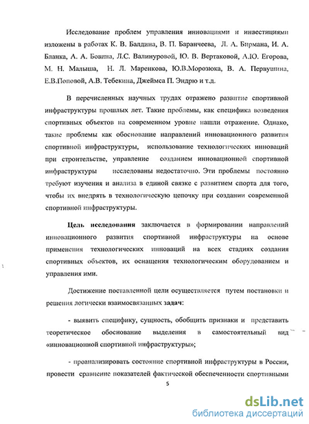 - выявить специфику, сущность, обобщить признаки и представить теоретическое обоснование выделения в самостоятельный вид «инновационной спортивной инфраструктуры»;