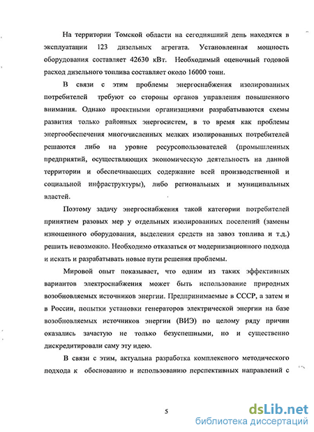Актуальность исследования. На территории России, даже в районах с развитой энергетической системой, имеется значительное количество мелких потребителей (порядка 30000 поселений), изолированных от магистральных и распределительных электрических сетей, в которых проживает около 11 млн. жителей.