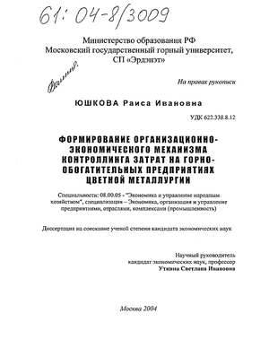 Целью работы является формирование организационно-экономического механизма контроллинга затрат по местам возникновения, обеспечивающего повышение эффективности деятельности ГОКов цветной металлургии.