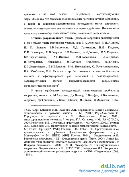 меры. Очевидно, что выявление экономических причин и истоков коррупции, а также ее социально-экономических последствий могут определить основные концептуальные направления в ее противодействии. Именно это и предопределило выбор темы данного диссертационного исследования.
