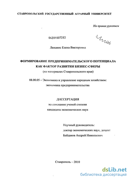 Цели и задачи исследования. Цель настоящего диссертационного исследования состоит в развитии теоретических и методических положений, относящихся к предпринимательскому потенциалу - важнейшей составляющей бизнес-сферы, определении методов оценки его уровня, факторов формирования и эффективной реализации. Достижение указанной цели потребовало решения следующих задач: