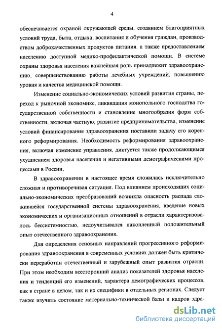 Диссертант поставил целью своего исследования выбор наиболее эффективных методов, путей управления и организации здравоохранения в условиях развития рыночной экономики