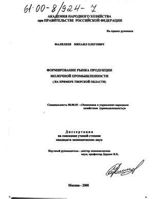 Необходимость научного осмысления новых качественных, разнонаправленных изменений в формировании российского рынка продукции предприятий молочной промышленности и выработки на этой основе рекомендаций по стимулированию его развития обусловили выбор темы диссертации.