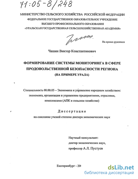 Для этого, прежде всего, нужен совершенный механизм отслеживания наиболее важных параметров данной системы, который носит название мониторинга. С ним связано множество проблем агроэкономического характера, начиная с аграрной реформы в целом и до всех ее составляющих, включая земельную реформу, институциональные преобразования, конкурентоспособность агропроизводства, продовольственную безопасность, устойчивость АПК, природно-техногенные особенности, финансово-кредитные механизмы обслуживания аграрного сектора и другие. Отслеживание показателей по всем составляющим позволяет получать достоверную информацию о результатах проводимых преобразований в аграрной сфере и принимать более взвешенные управленческие решения. Особенно это важно при вхождении России в ВТО, когда потребуется разработка и реализация региональных стратегий развития внешнеторговой деятельности в АПК, концепция внешнеэкономической политики, учитывающей цели и задачи защиты долгосрочных общенациональных интересов села, реализуемых через торговые отношения со странами ближнего и дальнего зарубежья.