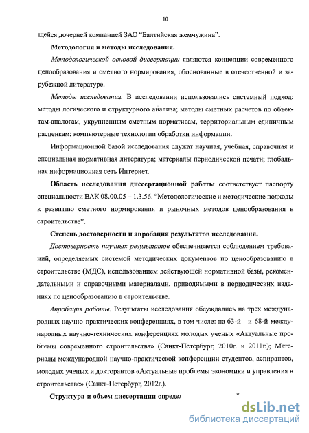 Методологической основой диссертации являются концепции современного ценообразования и сметного нормирования, обоснованные в отечественной и зарубежной литературе.
