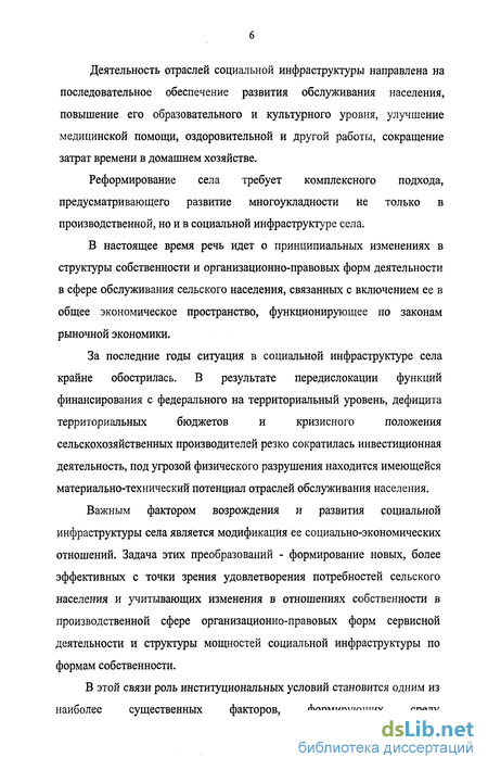 Реформирование села требует комплексного подхода, предусматривающего развитие многоукладное™ не только в производственной, но и в социальной инфраструктуре села.