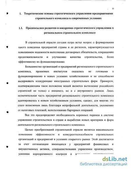 Глава 1. Теоретические основы стратегического управления предприятиями строительного комплекса 10
