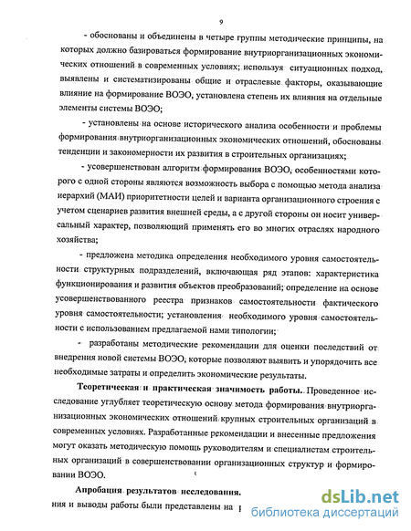 установлены на основе исторического анализа особенности и проблемы формирования»внутриорганизационных экономических отношений, обоснованы, тенденции и закономерности их развития в строительных организациях;