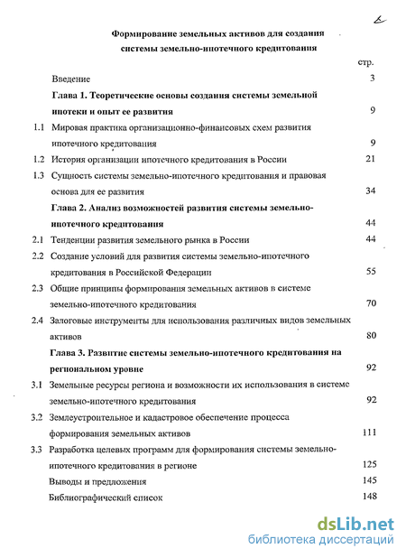 Предметом исследования выступают экономические отношения, возникающие в процессе создания и развития системы земельно-ипотечного кредитования.