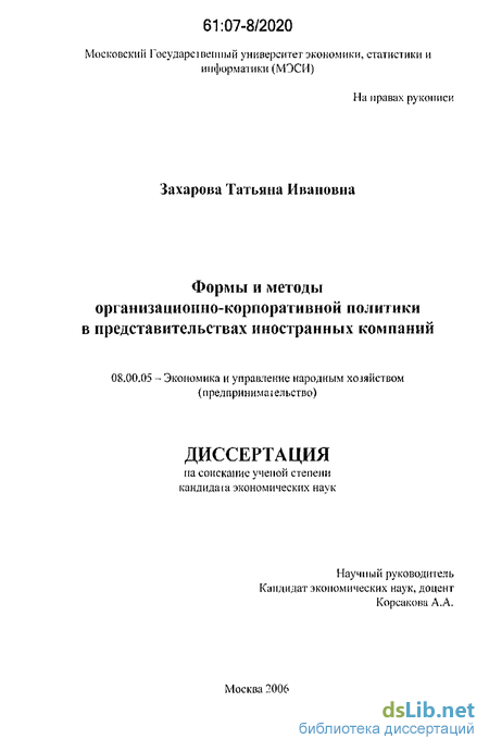 Что касается научных работ в области соїдания организационно-корпорагивной политики специально для представительств иностранных компаний, то их просто нет, или они - «конфиденциальная информация компании». Российский менеджмент находится в постоянном развиши и совершенствовании, следовательно, в таком же развитии находятся и формы и методы организационно-корпоративной политики.