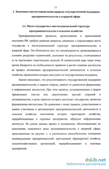 Место государства в институциональной структуре предпринимательства в сельском хозяйстве 11