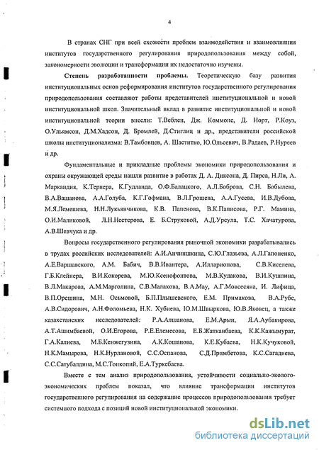 Степень разработанности проблемы. Теоретическую базу развития институциональных основ реформирования институтов государственного регулирования природопользования составляют работы представителей институциональной и новой институциональной школ. Значительный вклад в развитие институциональной и новой институциональной теории внесли: Т.Веблен, Дж. Коммонс, Д. Норт, Р.Коуз, О.Ульямсон, Д.М.Хадсон, Д. Бромлей, Д.Стиглиц и др., представители российской школы институционализма: В.Тамбовцев, А. Шаститко, Ю.Ольсевич, В.Радаев, Р.Нуреев и др.