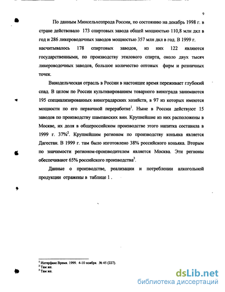 Действующий механизм государственного регулирования производства и ™ реализации алкогольной продукции не обеспечивает стабильности внутреннего рынка, защиту интересов отечественных производителей и потребителей. Удельный вес импортной алкогольной продукции в 1995-1999 гг. составил 40-50 % от объема ее продаж на внутреннем рынке, при загрузке производственных мощностей российских предприятий на 45-50%1.
