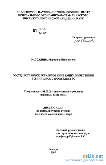 В работах Довдиенко В., Колобова С, Кольева А., Кострикина П., Кудрявцева В., Лимаренко И., Разумовой И., Сергеевой И., Цылиной Г. раскрываются методические, организационные и финансовые аспекты регулирования инвестиционных процессов в жилищном строительстве. Следует отметить, что каждое из представленных исследований, несомненно, раскрывает исключительно важные аспекты развития инвестиционного рынка.
