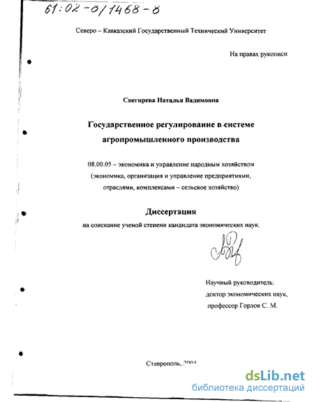 В выводах и предложениях обобщены основные результаты диссертационного исследования по проблеме государственного регулирования в системе агропромышленного производства, даны практические рекомендации по их использованию.