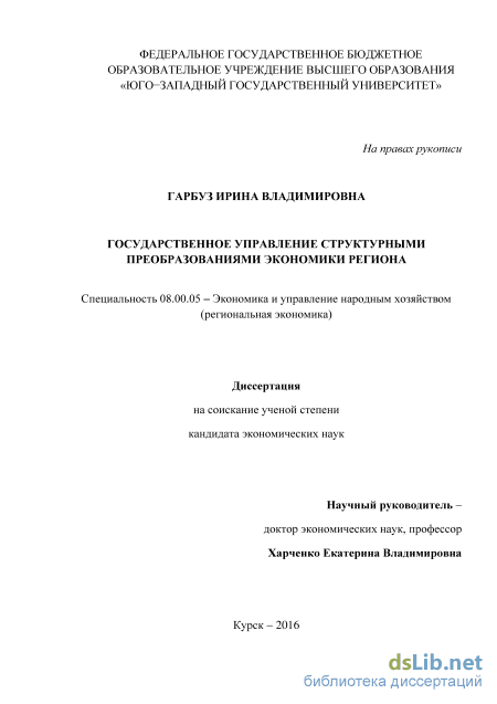 3.1. Мониторинг и диагностика структурных и секторальных пропорций региональной экономики (на примере Курской области) 98