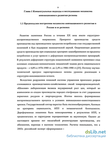 Предпосылки построения механизма инновационного развития в России и ее регионах 9