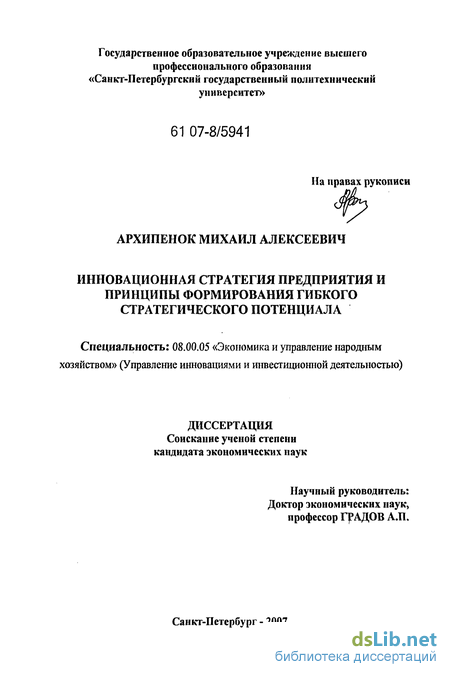 В диссертации разработано новое понятие агрессивности ишюващюшюй стратегии, как степени влияния совокупности новых продуктов, процессов, и новой стратегии на параметры стратегического потенциала предприятия.