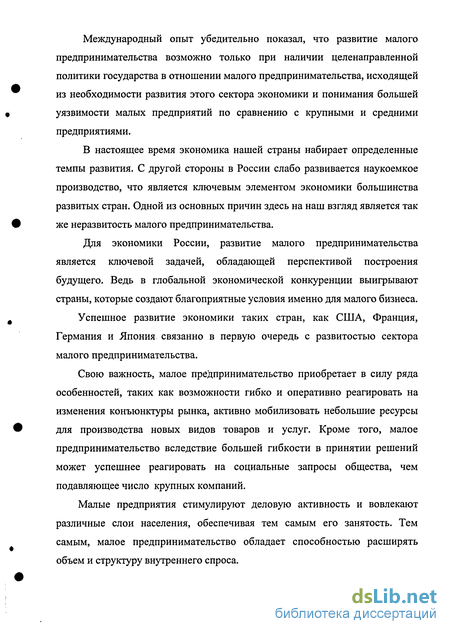 Международный опыт убедительно показал, что развитие малого предпринимательства возможно только при наличии целенаправленной политики государства в отношении малого предпринимательства, исходящей из необходимости развития этого сектора экономики и понимания большей уязвимости малых предприятий по сравнению с крупными и средними предприятиями.