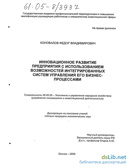 Актуальность темы исследования. За последние годы ситуация в российской экономике существенно изменилась: рыночная система управления сменила административную, предприятия и отдельные работники получили доступ к достижениям технологической, электронной и информационной революций, вступили в конкурентные отношения, усилившиеся с расширением деятельности транснациональных корпораций на отечественном рынке. В результате произошедших перемен российские предприятия получили не только новые возможности, но и многочисленные проблемы, требующие инновационного развития бизнес-процессов в соответствии с требованиями доминирующих экономических, технологических и социальных тенденций развития современной экономики.