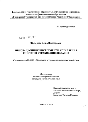 Жихарева, Анна Викторовна. Инновационные инструменты управления системой страхования вкладов : диссертация ... кандидата экономических наук : 08.00.05 / Жихарева Анна Викторовна; [Место защиты: Финансовый ун-т при Правительстве РФ].- Москва, 2010.- 201 с.: ил. РГБ ОД, 61 11-8/349